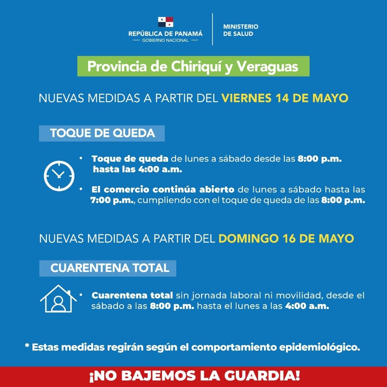 Ministerio De Salud De Panama On Twitter Nuevas Medidas Para La Provincia De Chiriqui Y Veraguas A Partir Del 14 De Mayo Toque De Queda De Lunes A Sabado Desde Las 8 00