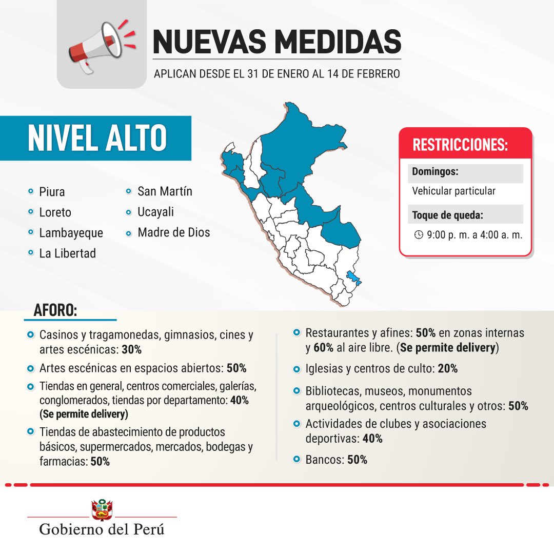 Nuevas medidas del gobierno peru. Ubica tu lugar de residencia y las medidas que debes acatar según tu nivel de alerta del 6 al 19 de setiembre de 2021 Decreto Supremo N 151-2021-PCM. Mencionó que su gobierno está. El Perú afronta la segunda ola del COVID 19 pues el incremento de casos a nivel nacional han hecho que el sector salud colapse de nuevo y las personas requieran atención médica yo internamiento por ello el Gobierno anunciará este miércoles 13 de enero nuevas medidas de restricción para frenar el avance de la pandemia en el país.