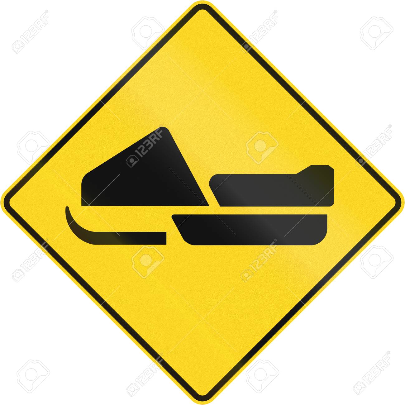 Warning Road Sign In Canada Snowmobiles Crossing This Sign Is Used In Ontario Stock Photo Picture And Royalty Free Image Image 43196464