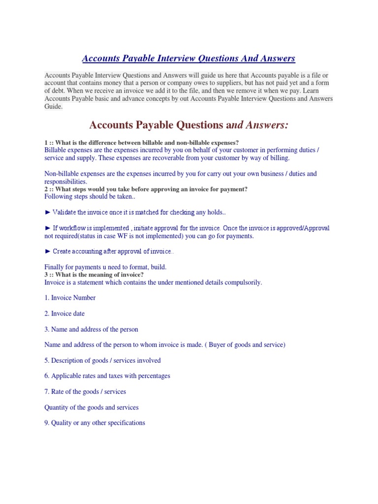 Accounts Payable Interview Questions And Answers Docxsx Pdf Accounts Payable Invoice